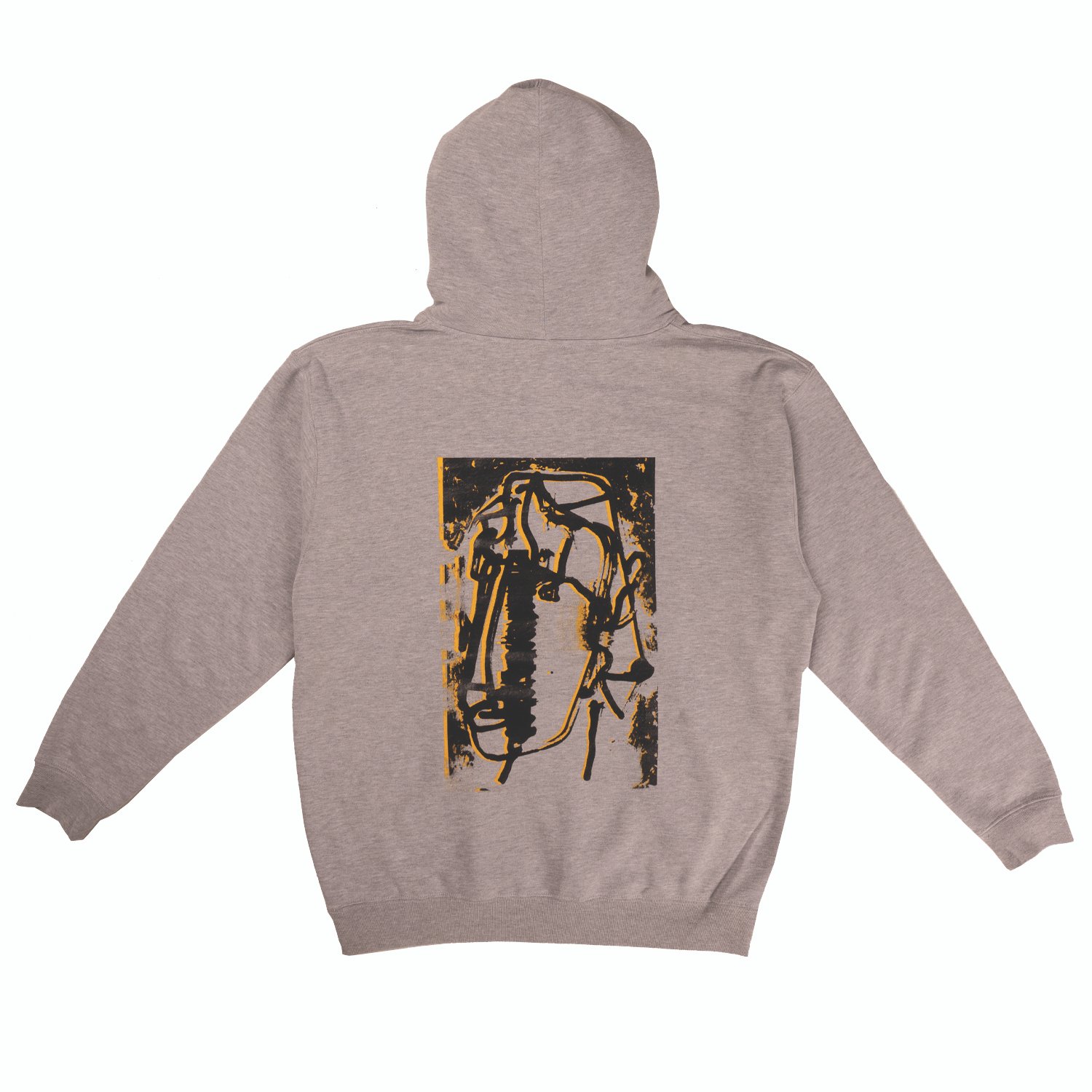 CUSTOM KNIT FLEECE PULLOVER HOOD WITH EXTENDED FRONT POUCH POCKET AND FRONT AND BACK PRINT.